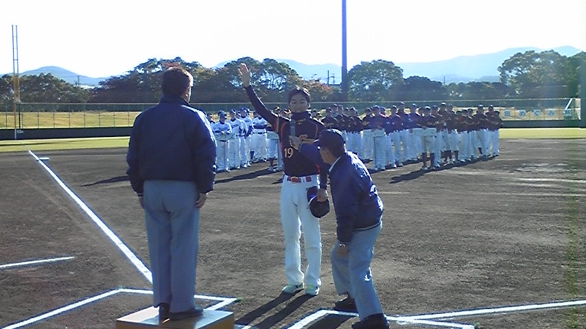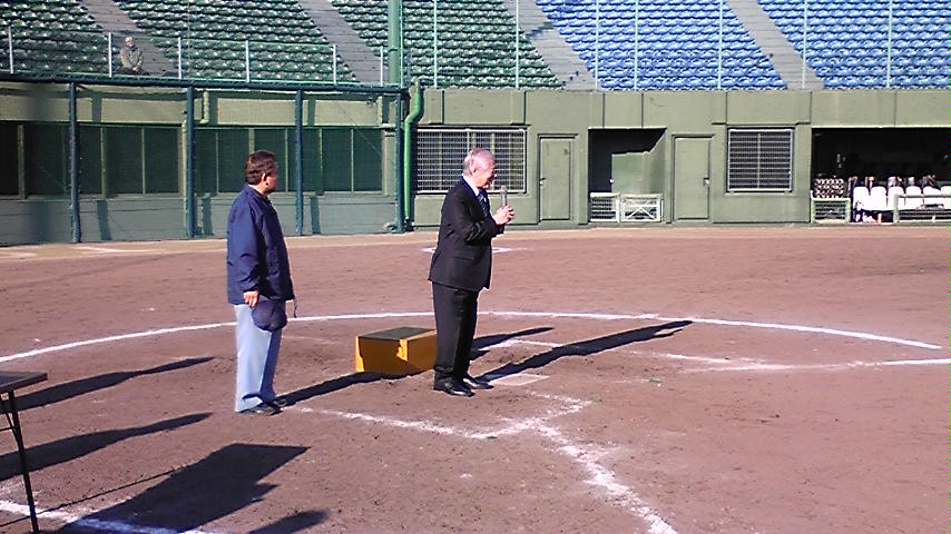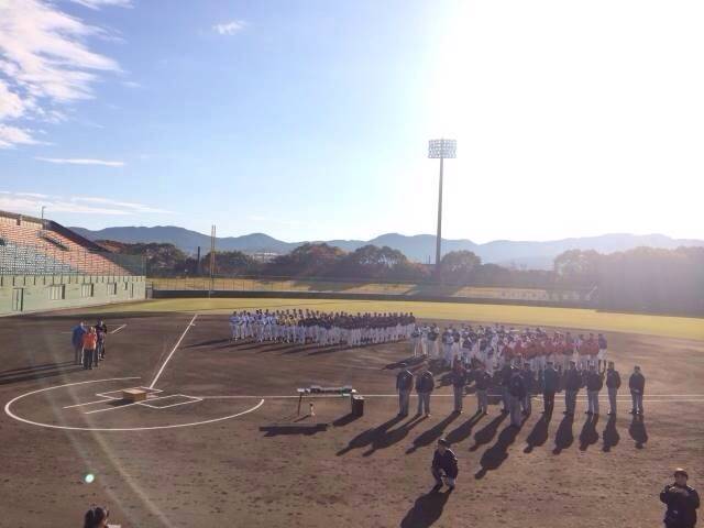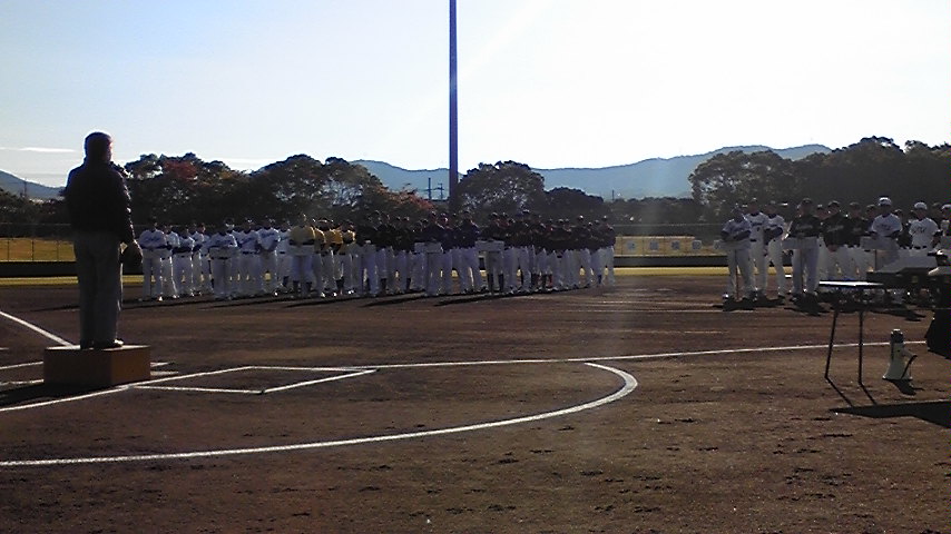 | 11/22(土) 豊橋市民球場 8:30 開会式 | 観客席上段から見た開会式の様子 |