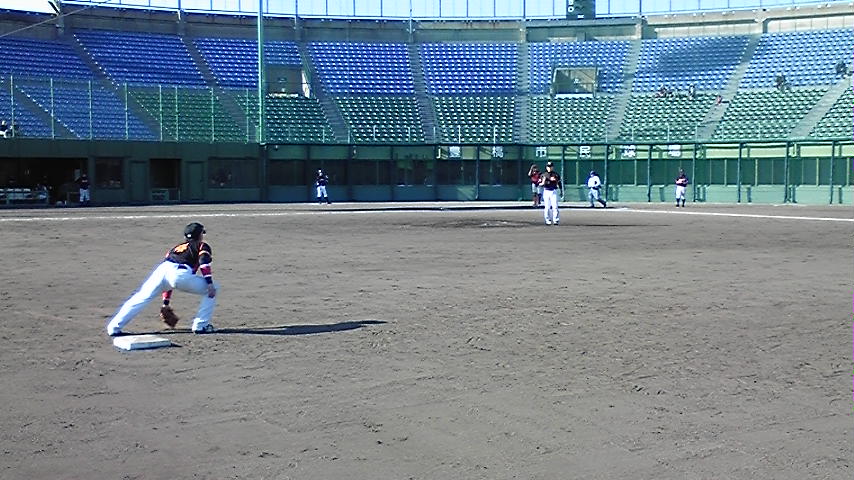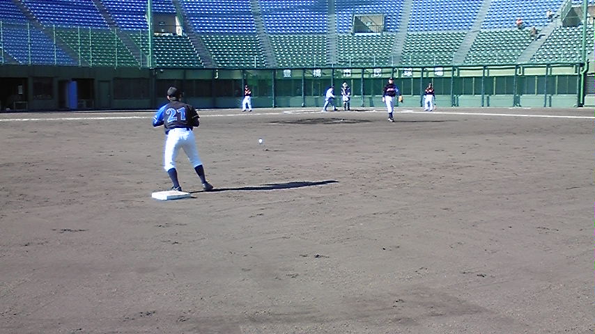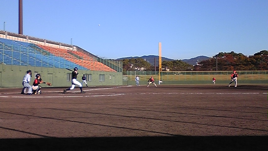 | 「ドリ−ムキャッツ」(川崎)の猛攻 6回表 | 本塁打(推定100m以上)を放った石塚選手 |